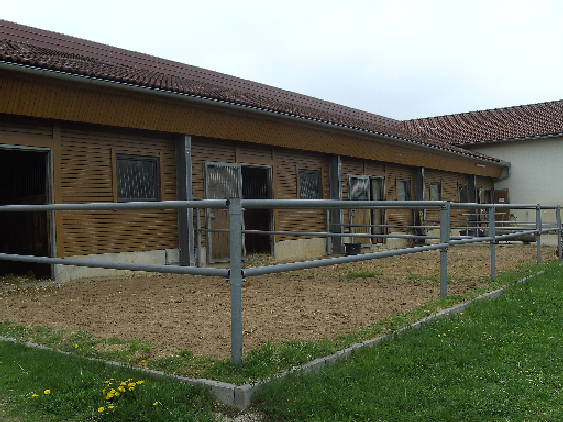Der helle und luftige Reitstall bietet 15 grosse Boxen mit Fenstern, drei davon mit Paddocks.