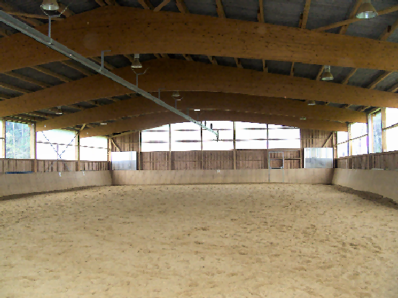 Die helle Reithalle (40 x 20m) mit optimalen Bodenverhältnissen bietet immer ideale Be- dingungen für Reiter und Pferd.
